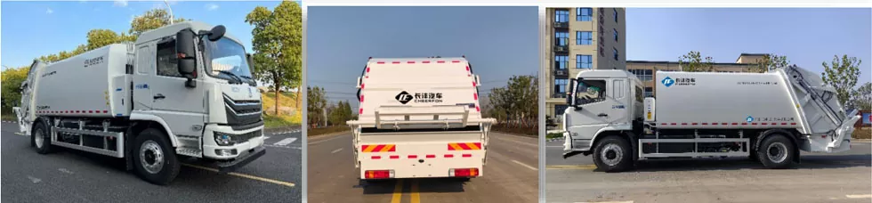 18 टन कम्प्रेसन गार्बेज ट्रक, र फोहोर बिन, फिलर, पुश शोभेल, फिडिङ मेकानिज्म, हाइड्रोलिक प्रणाली, इलेक्ट्रोनिक नियन्त्रण प्रणाली र अन्य कम्पोनेन्टहरू थपेर परिमार्जन गरिएको छ। गाडीले रियर-माउन्ट गरिएको दुई-तर्फी कम्प्रेसन टेक्नोलोजी, उच्च परिचालन दक्षता, सरल र सुन्दर उपस्थिति, उत्कृष्ट प्रदर्शन, र मानवीकृत नियन्त्रण र सञ्चालन विधिहरू अपनाएको छ। कोर कम्पोनेन्टहरू जस्तै हाइड्रोलिक र इलेक्ट्रिकल पार्ट्सहरू उच्च सञ्चालन स्थिरताका साथ उच्च गुणस्तरका कम्पोनेन्टहरूबाट चयन गरिन्छन्। यो एक भरपर्दो, कुशल, सरल र सुविधाजनक फोहोर ट्रक हो।